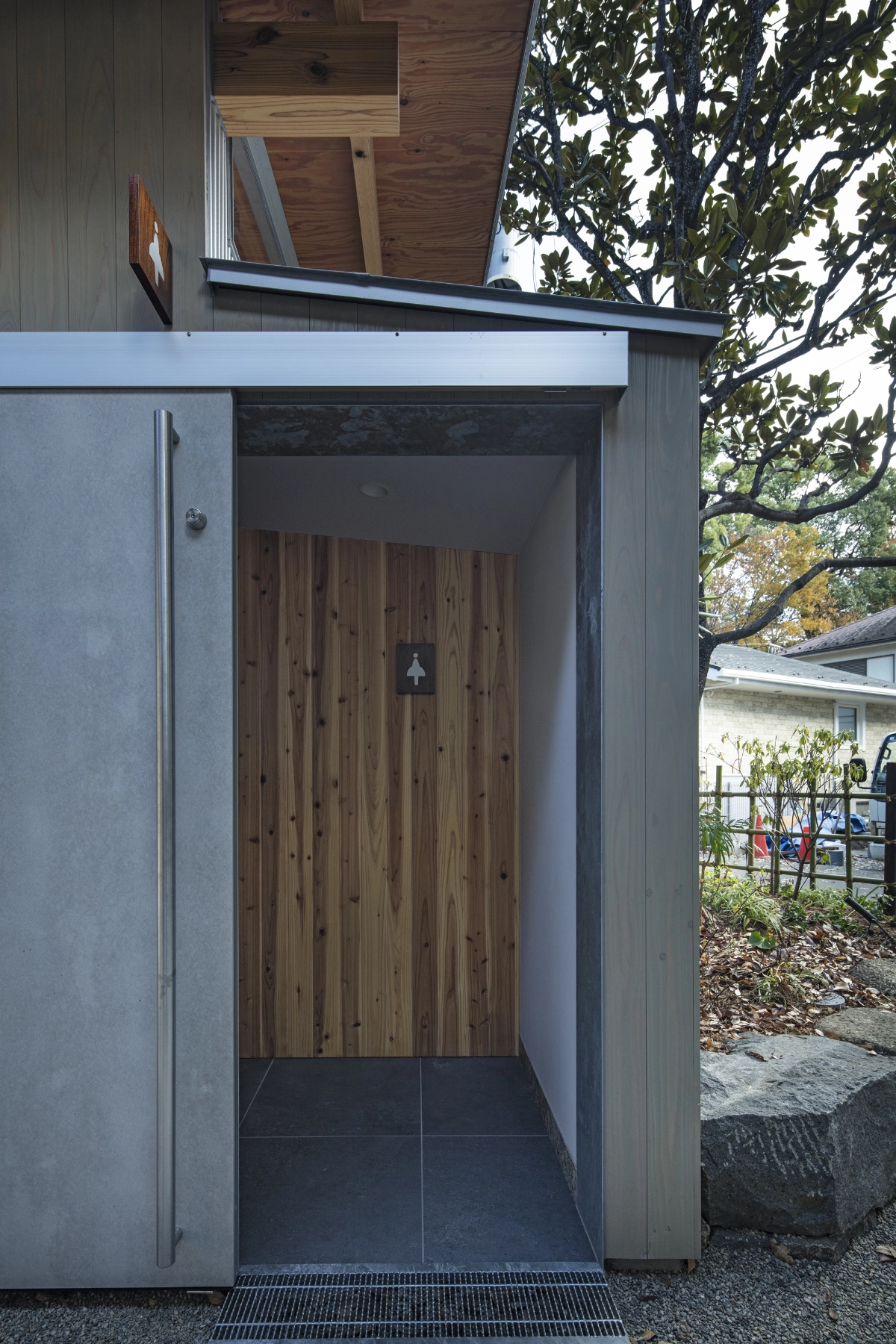 This project involved the construction of a small gathering and lodging facility near Hikawa Sando in Omiya, Saitama, intended to welcome both local prayer and everyday life. Throughout the project, conversations often returned to themes such as the flow symbolized by water, the threshold between the sacred and the ordinary, and the distance between humans and other beings.