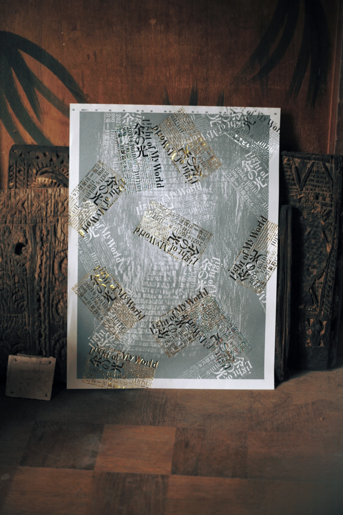 箔押し機を導入して初めての仕事。一つの身体にデザイナーと印刷工人の二つの職能が入るとこうなる。