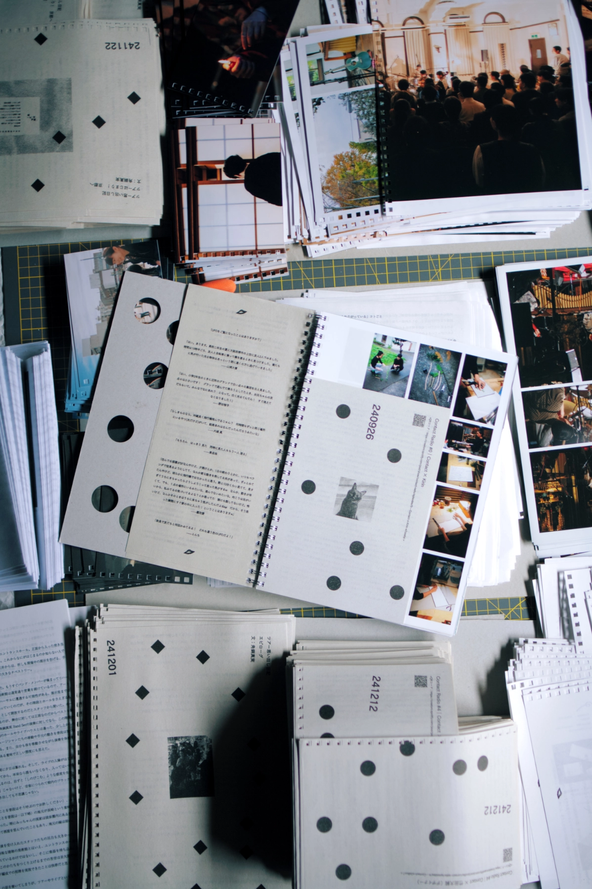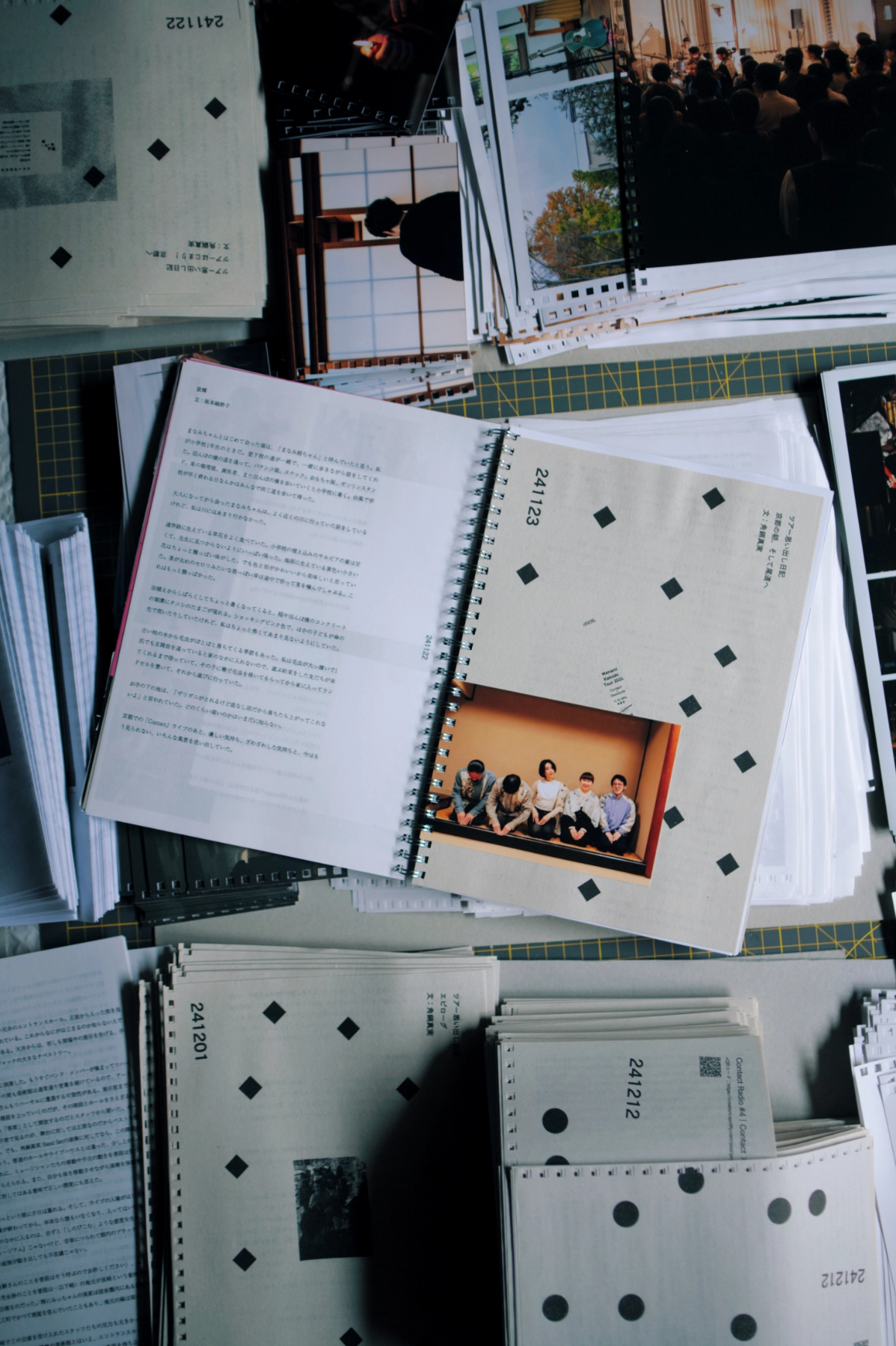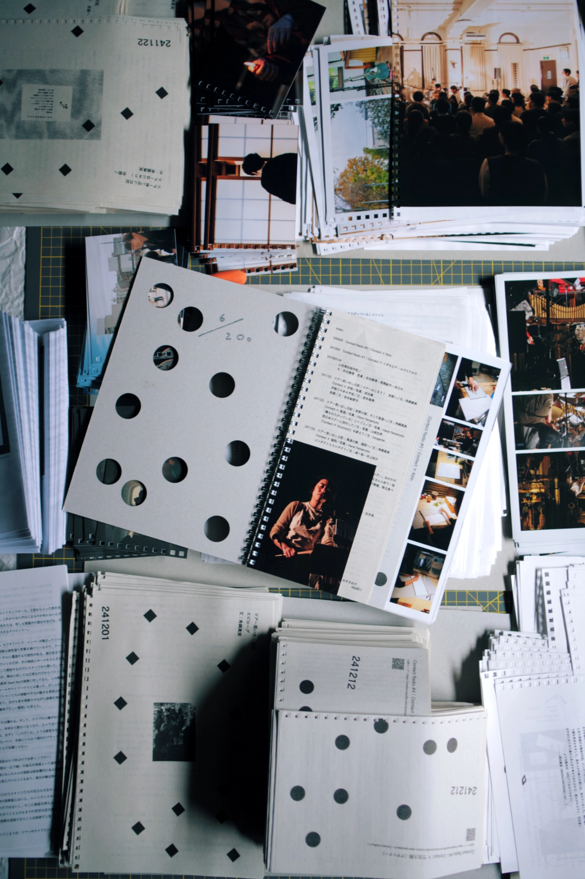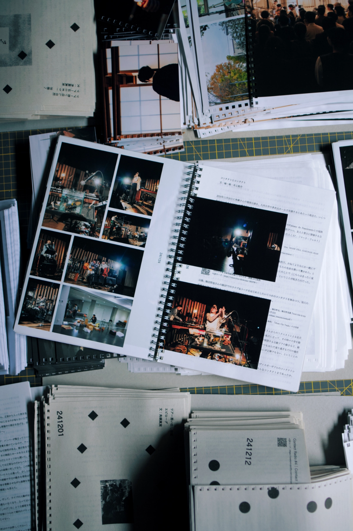 An archive book of the 2024 live tour by Mami Kakudō and her band members. Along the journey of the tour, it compiles various records of “Contact.” A total of seventeen people—including artists, editors, and fans—participated in collating and cover processing during production. For the publication commemorative live event, a ring-binding machine was brought to the venue, and the processes of collating and binding were carried out together with many participants.