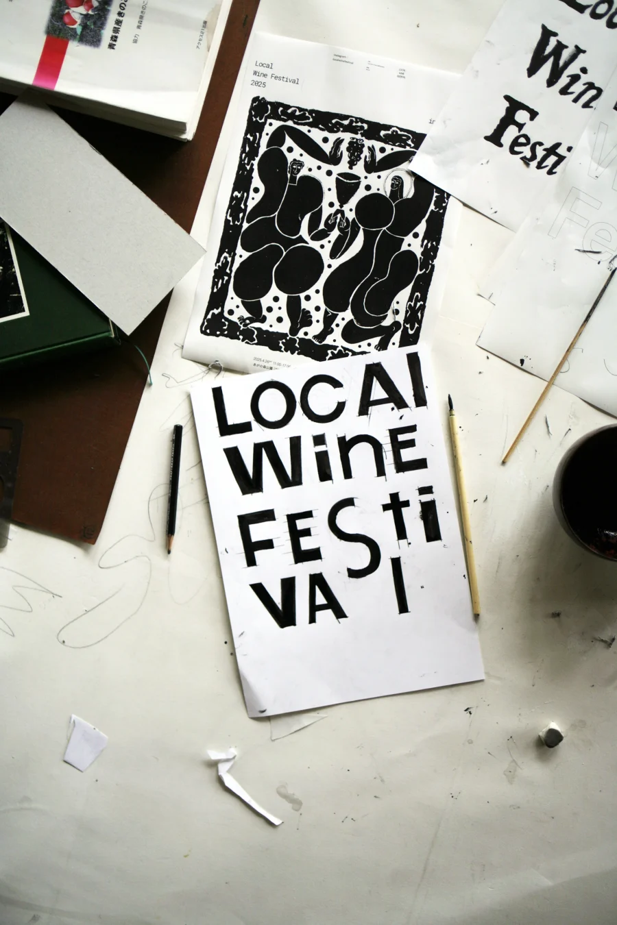 The festival’s visual identity was structured around three elements—writing tools, research and creative process, and motifs—each contributing to how its imagery takes shape.