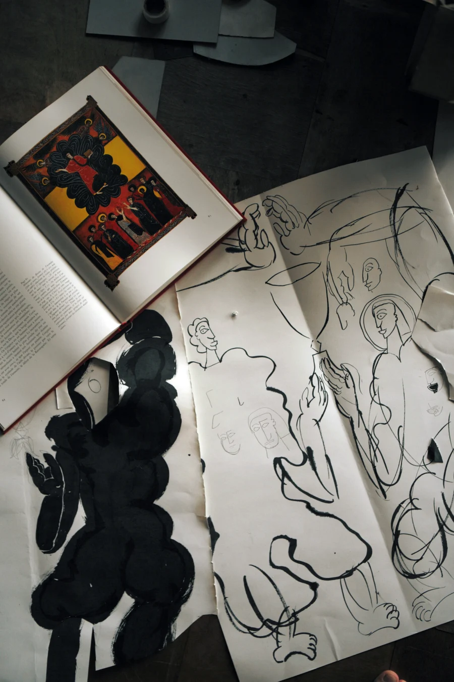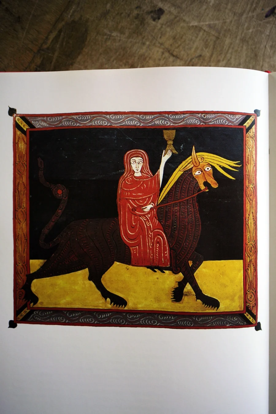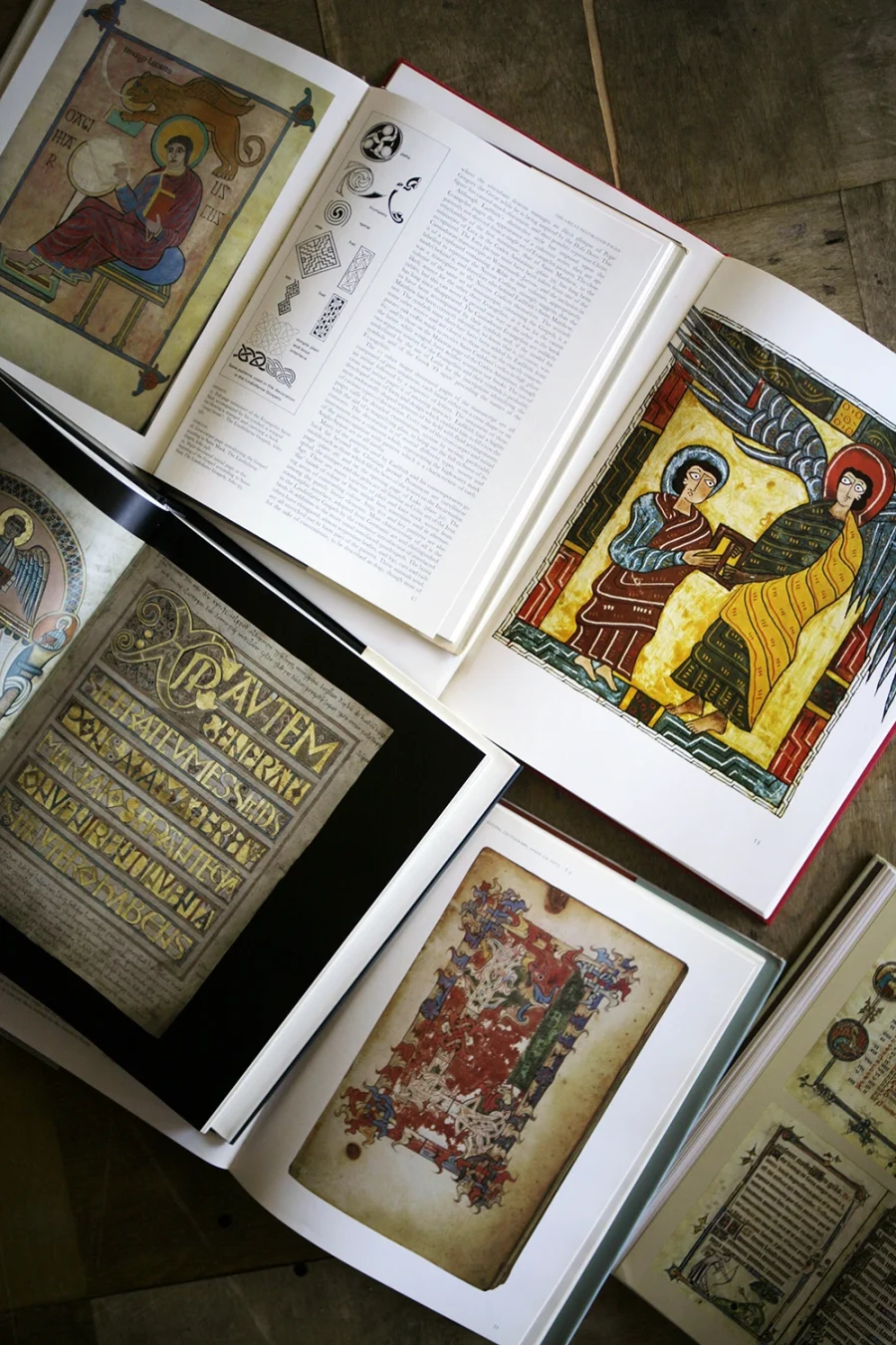 写本は神の声を写し取る仕事ではあるが、そこには人間としての遊び心がある。参考にする本は、スペインやアイルランド、その他の地域でキリスト教と土着の文化が混じり合ったようなものを選んだ。