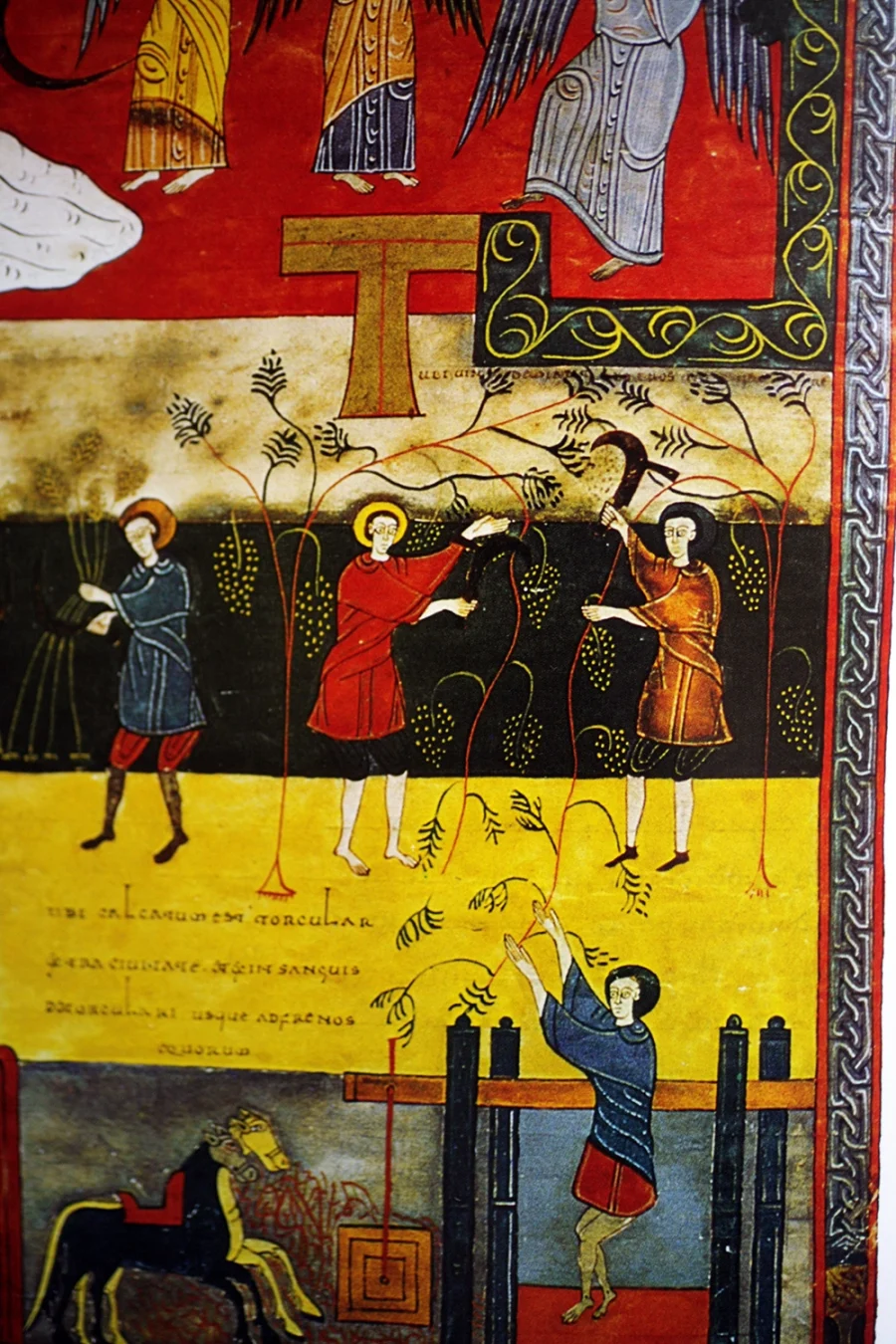 ワインに共食ときたら、聖書にそんな話があったことを思い出した。書斎にある図録をガザガザと引っ張り出し、古い聖書を見てみると案の定、関連する描写がいくつも見つかった。天に高らかに杯を掲げる天使、馬の上で杯を掲げる人、葡萄の世話をする農夫たちだ。