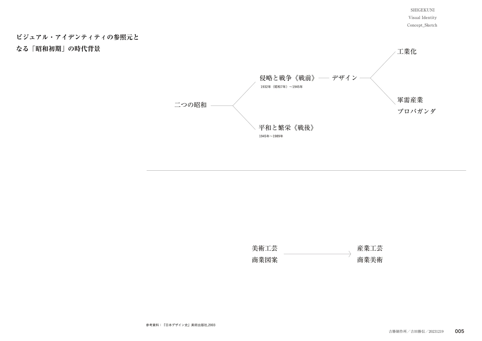 デザイン史を振り返ると、昭和初期は大きな影響をもった時代である。1932年から1945年にかけての「侵略と戦争」の時代には、デザインは工業化や軍需産業、プロパガンダと結びつき、1945年から1989年にかけての「平和と繁栄」の時代には、復興と経済成長の中で新しい展開を見せた。美術工芸や商業図案から産業工芸や商業美術への移行もそこに含まれる。